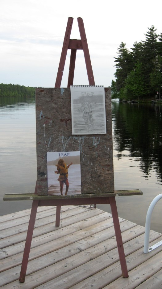 I’ve always believed that art inspires art, and here’s a beautiful example of that. These two photos, the latest entries for my By Leaps and Bounds Photo Contest, were taken by artist Tracey Riddell-Ireland at Bennett Lake, Ontario. “I once said that I found your work to be inspirational,” she writes. “These two photos represent that inner inspiration. Drawing is something that I always loved to do, and your poems have inspired me to create something that I didn’t know I could create until it was finished.”